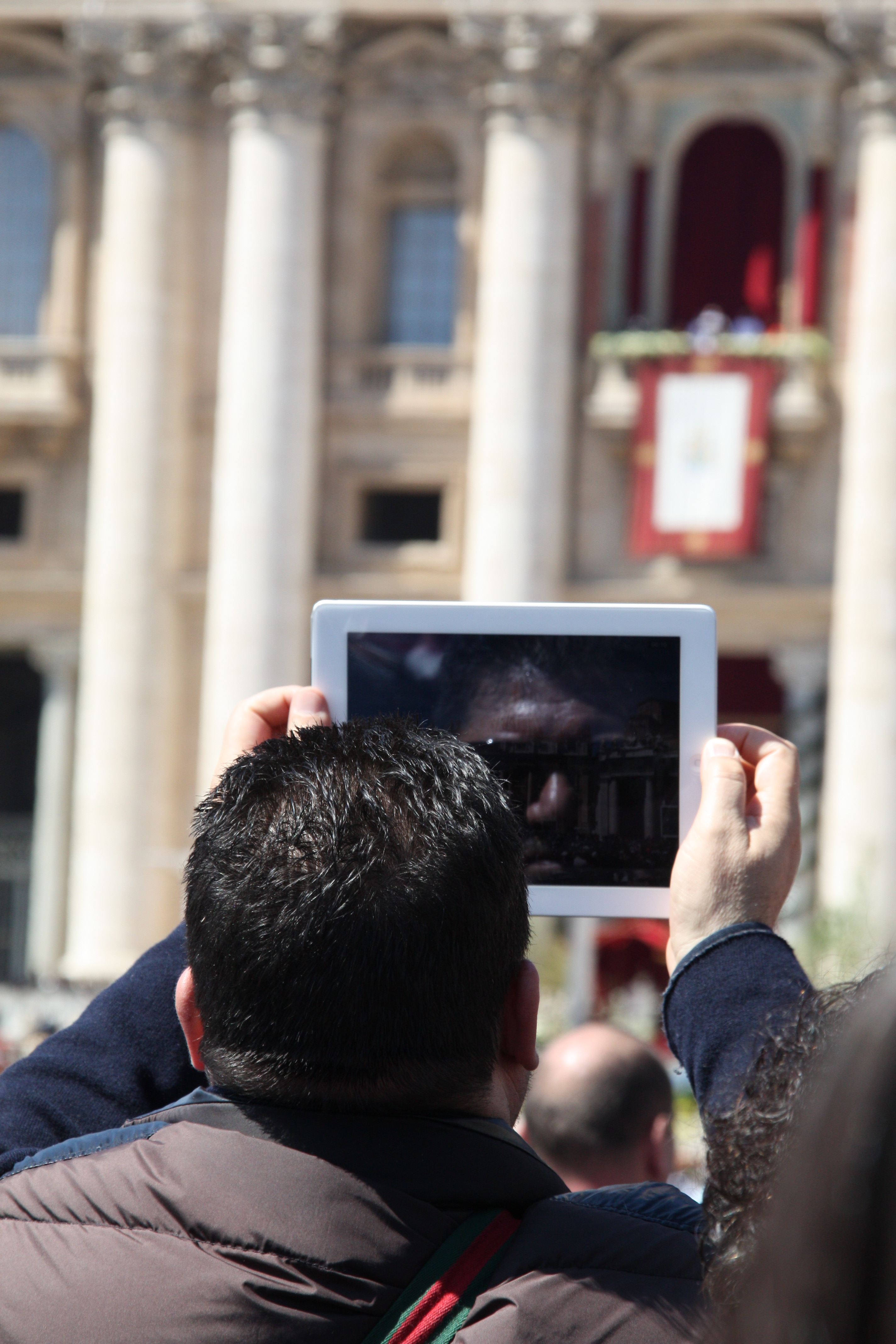 Ci-dessus: Le Vatican, lors de la veillée nocturne, calme et intime. Les fidèles Place Saint-Pierre, recevant l’hosti ou essayant d’arracher un cliché du Pape François.