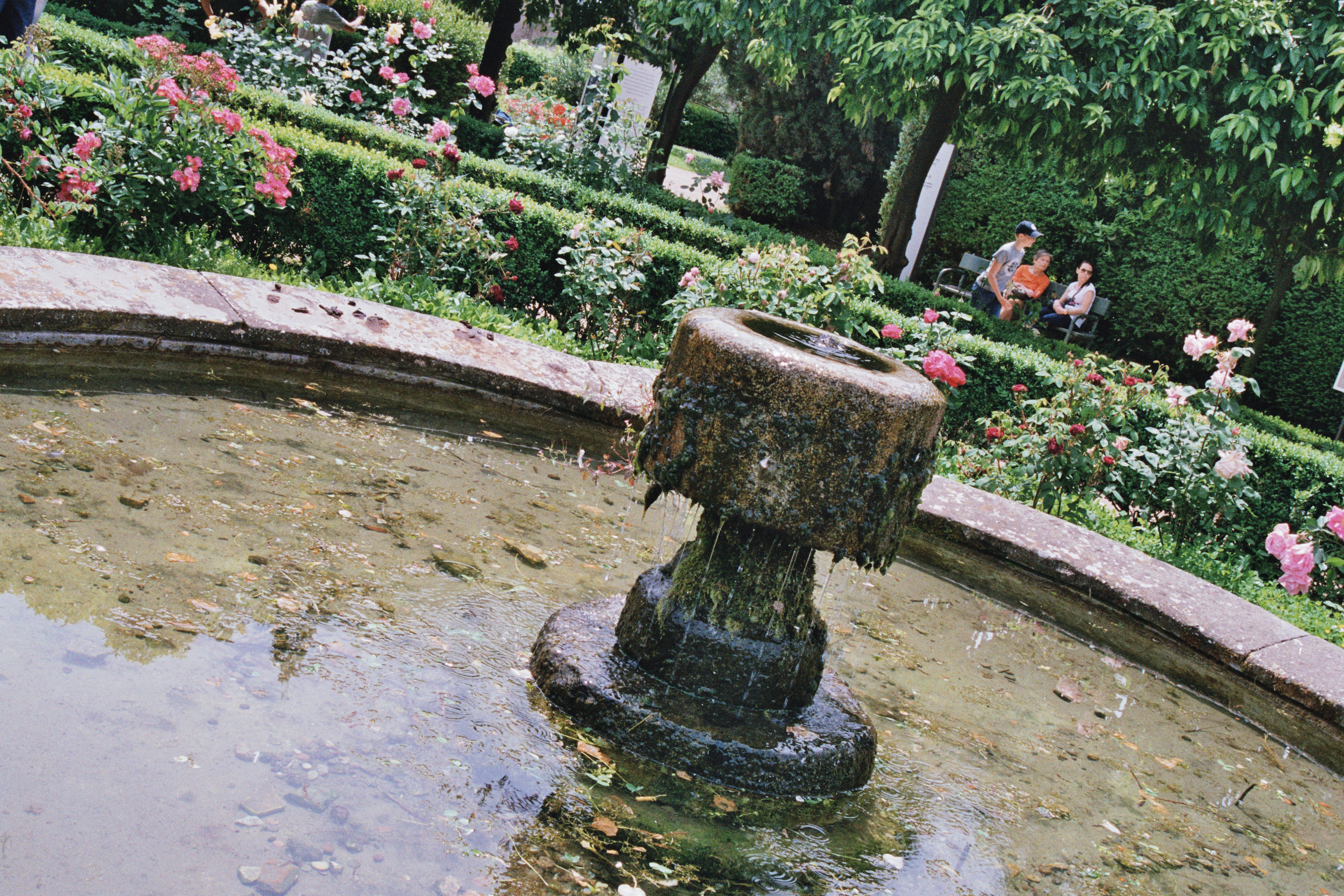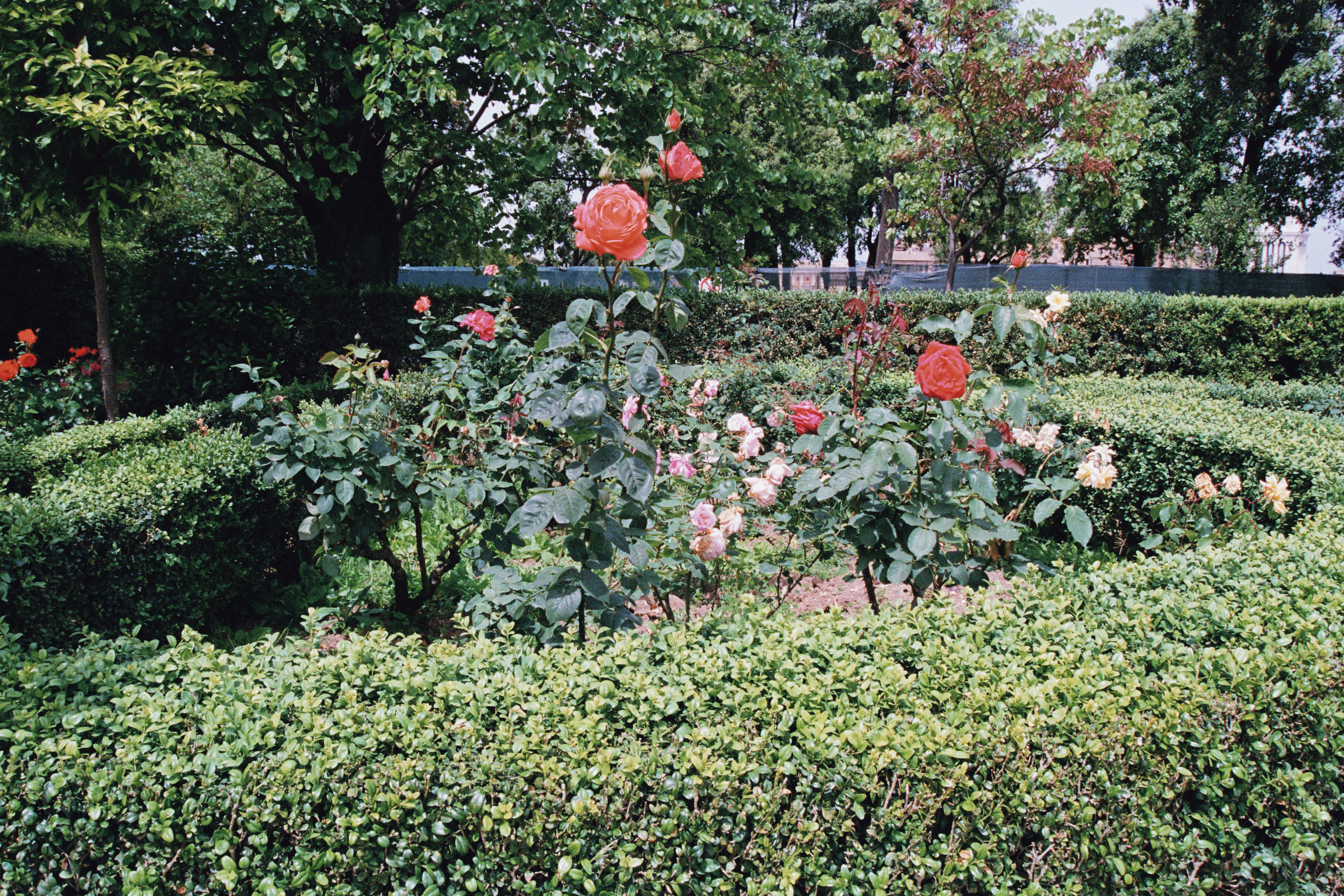 Orangers et rosiers se font face, entourés de fontaines et de buissons taillés au millimètre près.