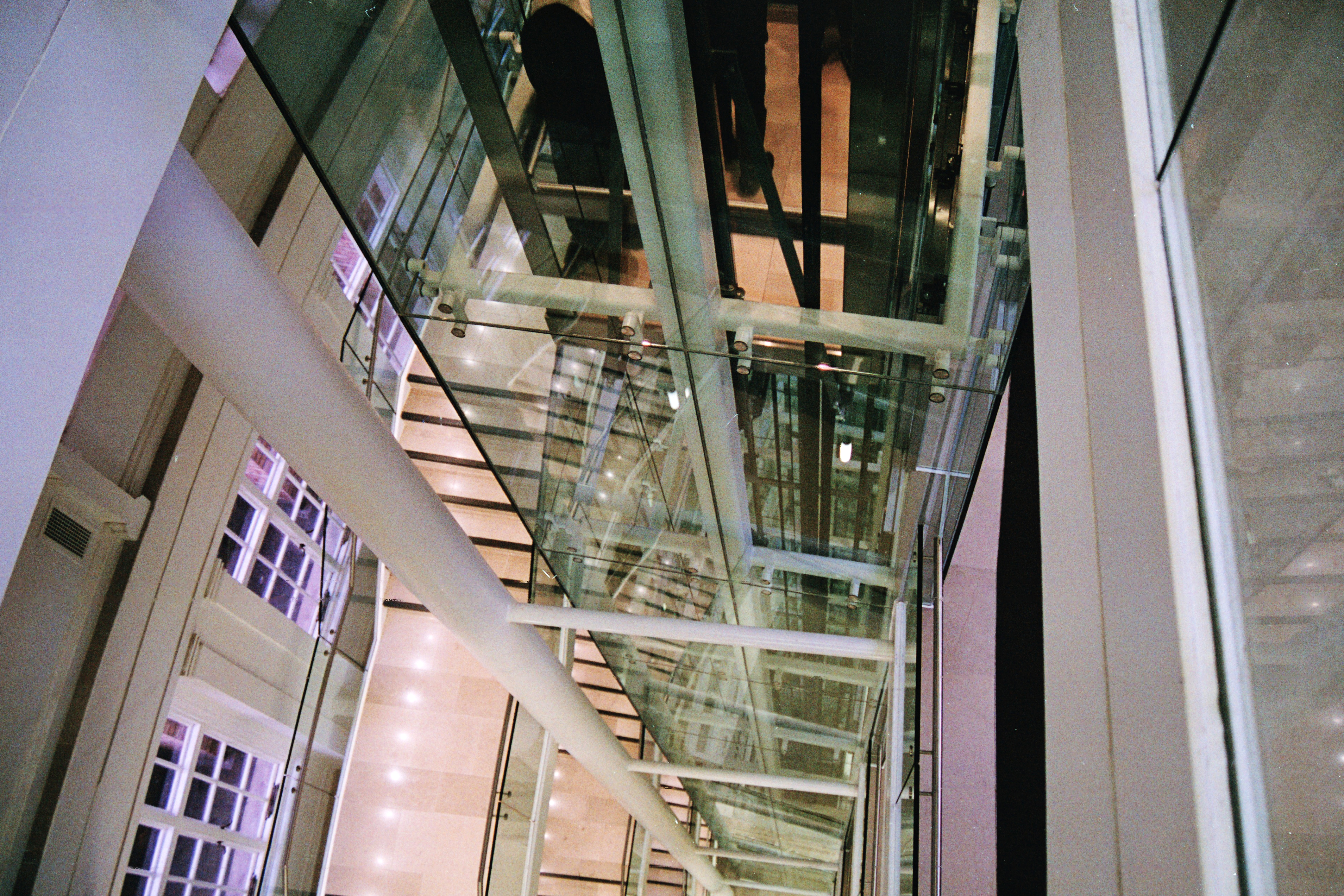 Ci-dessus: le département musique de la Central Library, la salle de lecture et les bibliothèques de livres, ainsi que l’ascenseur dans sa structure de verre et de métal.