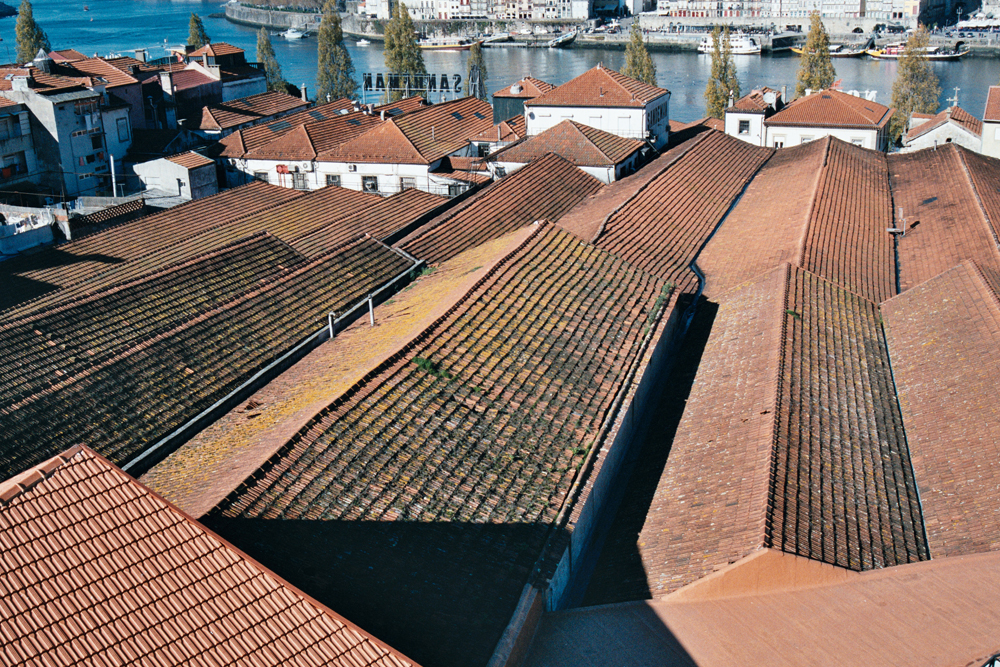 De l’autre côté du Rio Duoro, face au centre historique : des dizaines de caves à Porto sont couvertes de jolis toits pointus en briques.