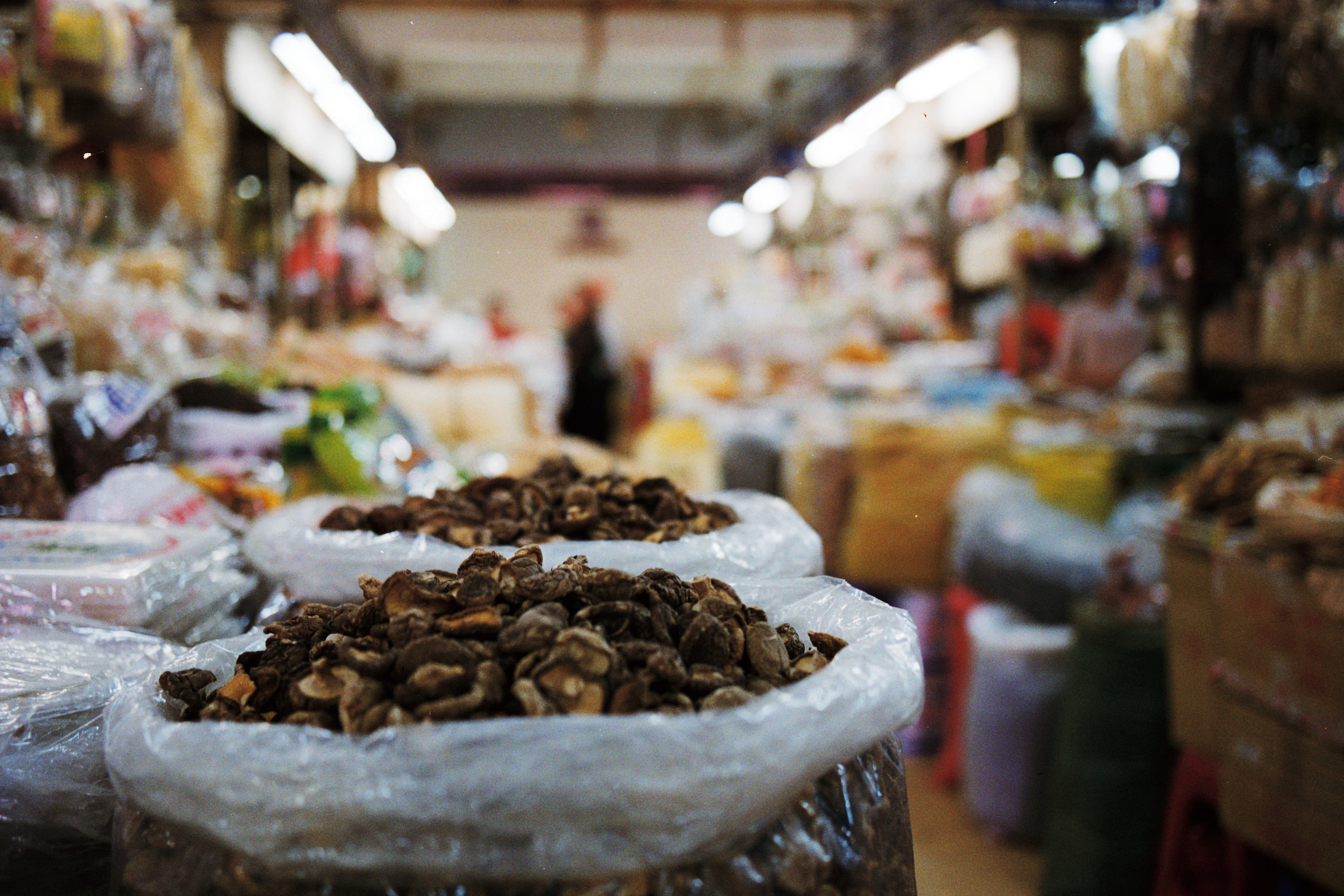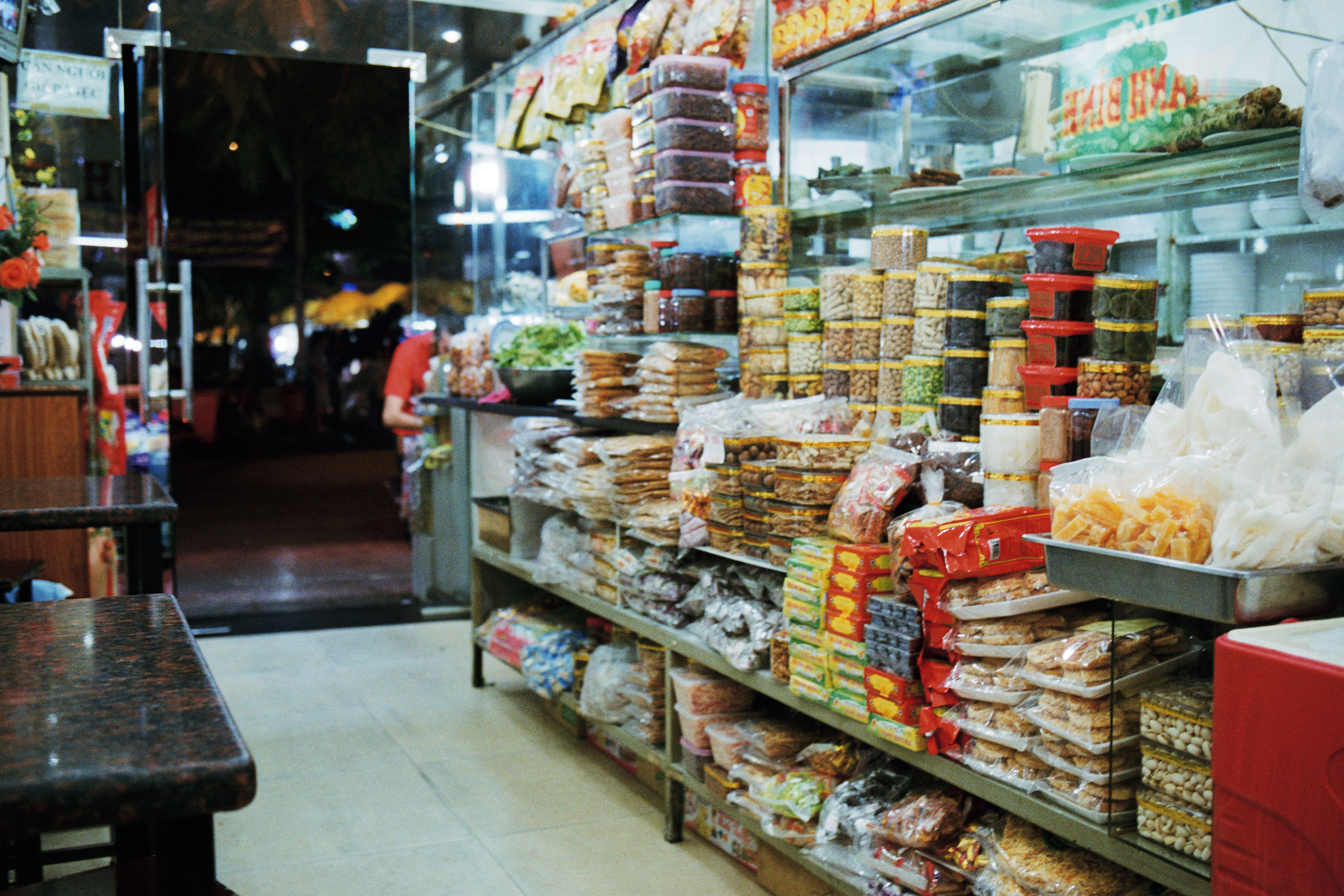 Ci-dessous: le restaurant et épicerie Thanh Bình 2 à Saïgon ainsi que le marché de Bến Thành, de l’intérieur, et de l’extérieur où de nombreux restaurants en plein air ont pris place.